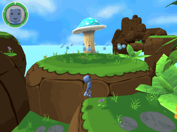 Mushroom spazing out on screen near the huge weighing machine, i dont entirely know why but you hit the blue mushroom thats on a tiny side path at the end, the mushroom starts showing up on the screen glitched like, this can be seen at 3:56